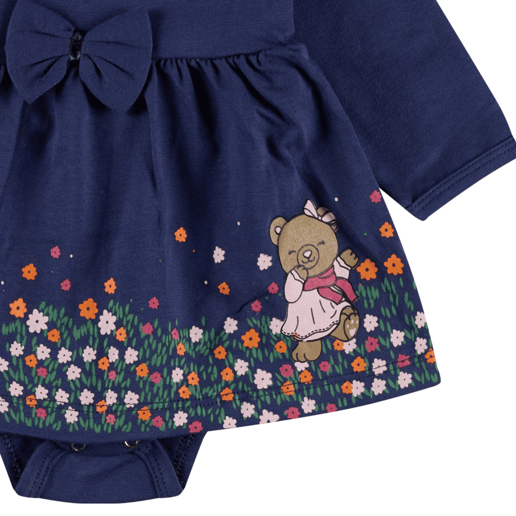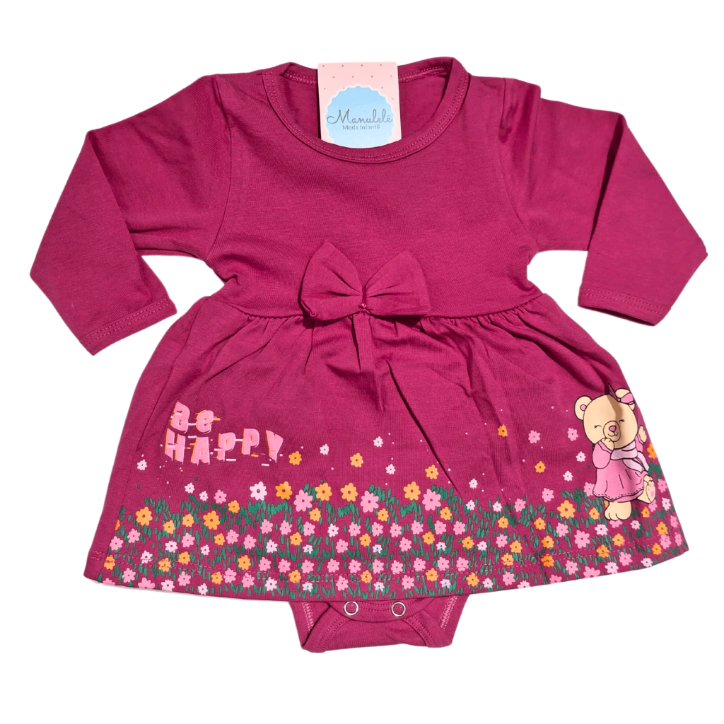 Disponível em diversas cores e estampas, o Body Vestido Bebê Manga Longa é a escolha perfeita para deixar sua bebê ainda mais linda e confortável.