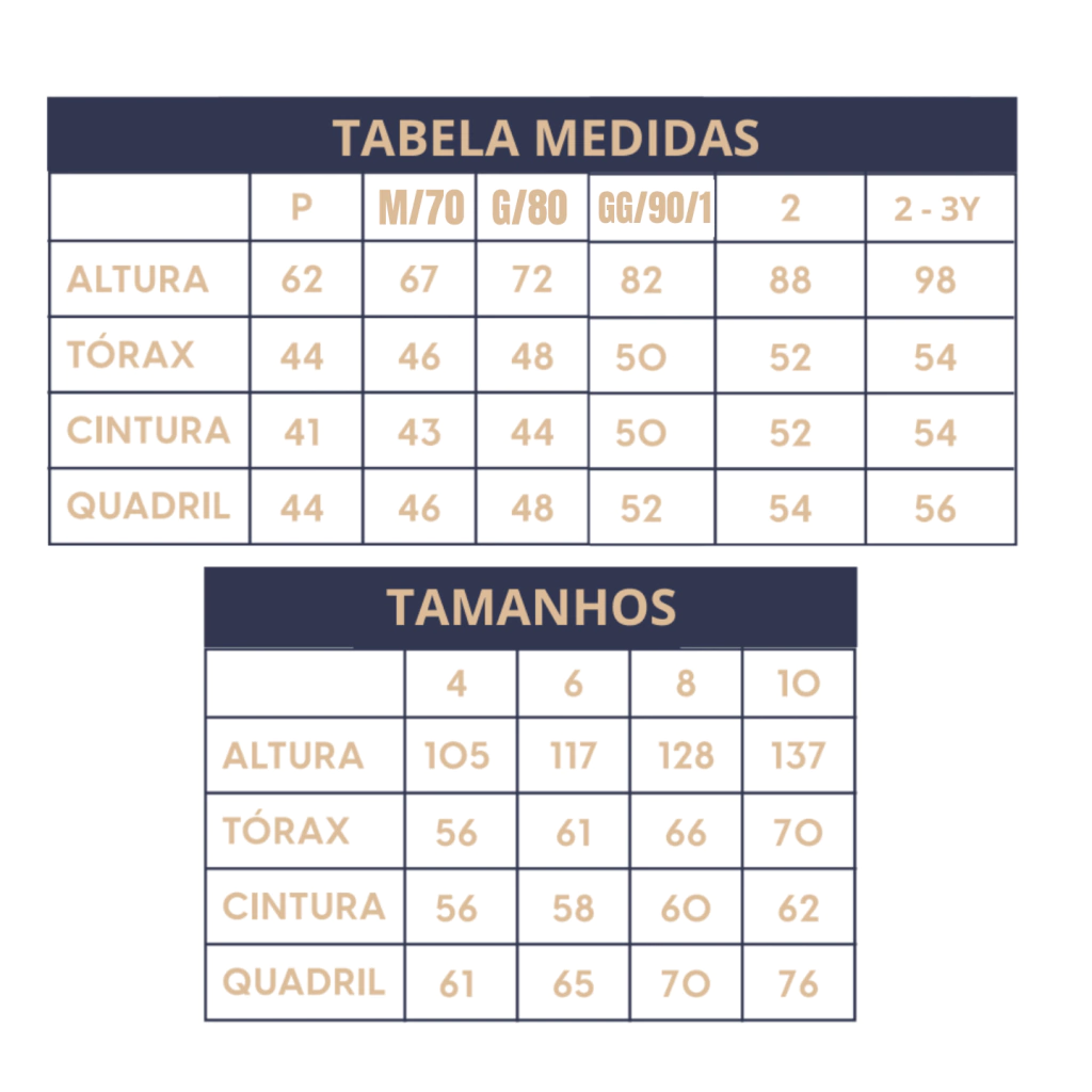 Para facilitar seu processo de escolha, fizemos uma tabela de medidas para que você consiga adquirir seu produto com segurança e sem ter o transtorno de precisar efetuar futuras trocas devido ao tamanho incorreto. Verifique a tabela nas fotos para fazer a escolha certa.