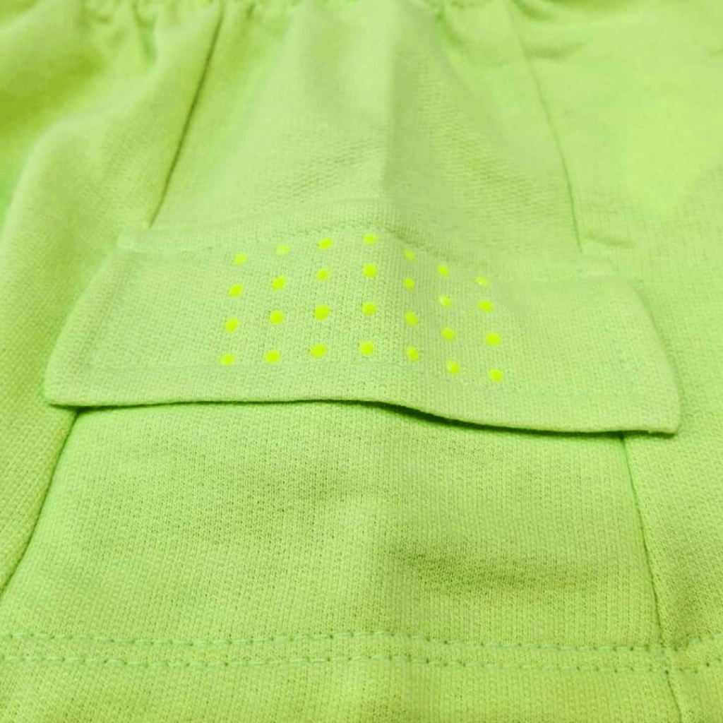 Bermuda em moletinho pink neon com bolso cargo lateral e detalhe em pedras