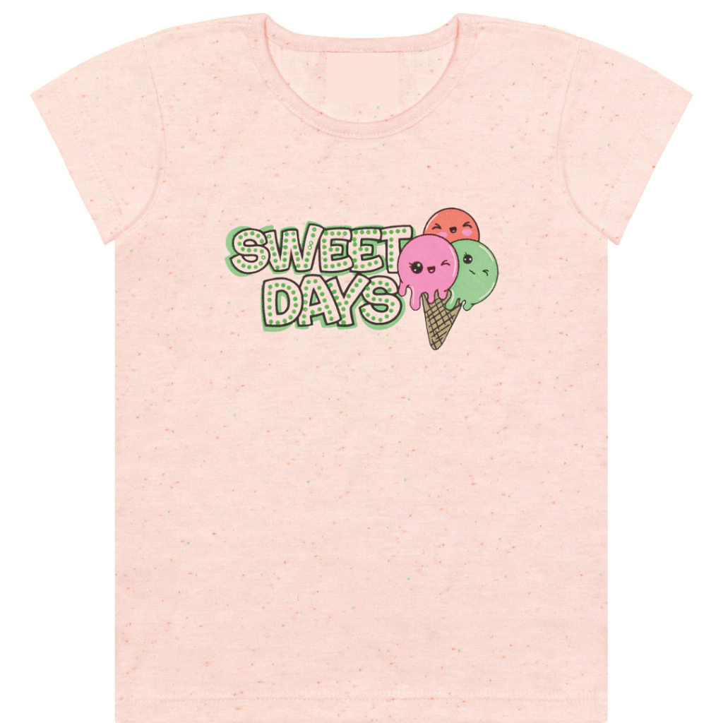 Blusa em malha botonê com estampa de sorvete e aplicação de pedras