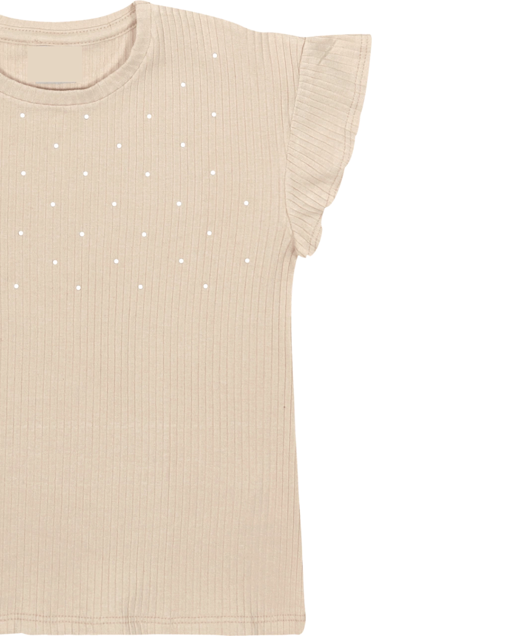 O conjunto infantil feminino é ideal para unir conforto, brilho e estilo em um só look. A blusa canelada, confeccionada em malha 93% algodão e 7% elastano, tem toque macio, ajuste confortável e pedras de strass aplicadas, que trazem um toque de delicadeza e sofisticação.