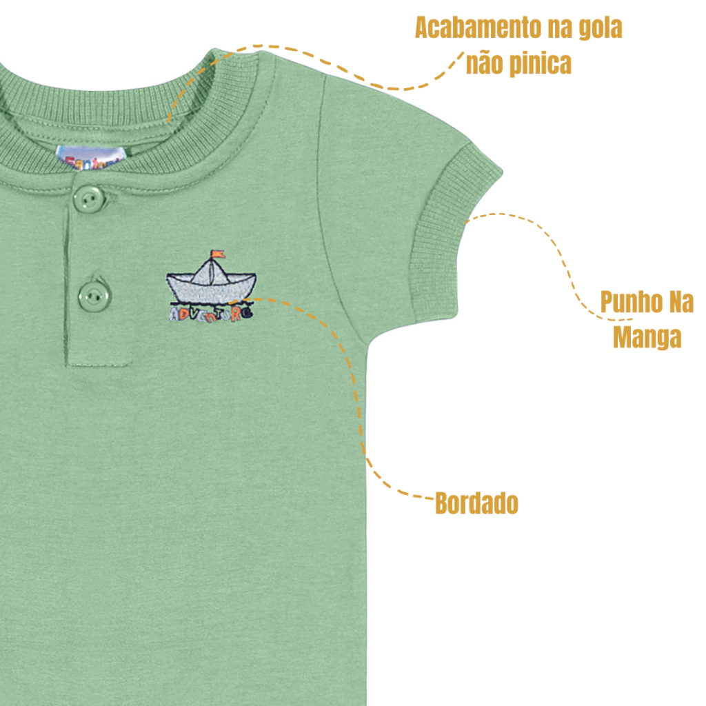 Proporcione conforto, estilo e praticidade ao seu bebê com este lindo kit composto por 2 bodies em suedine macio, ideais para o dia a dia e também para compor o enxoval.