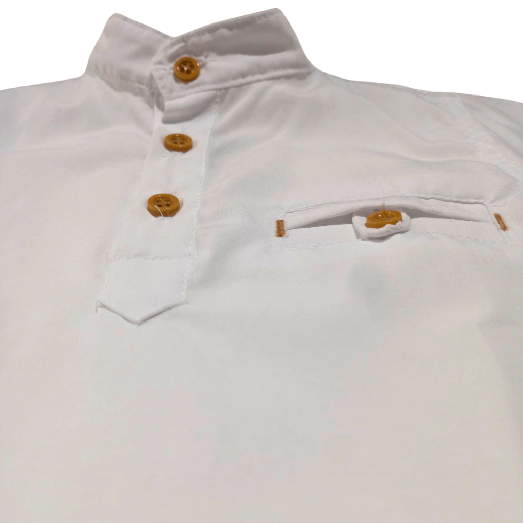 A bata social infantil, feita em tricoline premium (55% algodão e 45% poliéster), é leve e fresca, proporcionando total conforto durante toda a cerimônia. Seu design clássico e sofisticado torna essa roupa para batizado menino perfeita para a ocasião, além de ser uma excelente opção para eventos como casamentos e festas especiais.